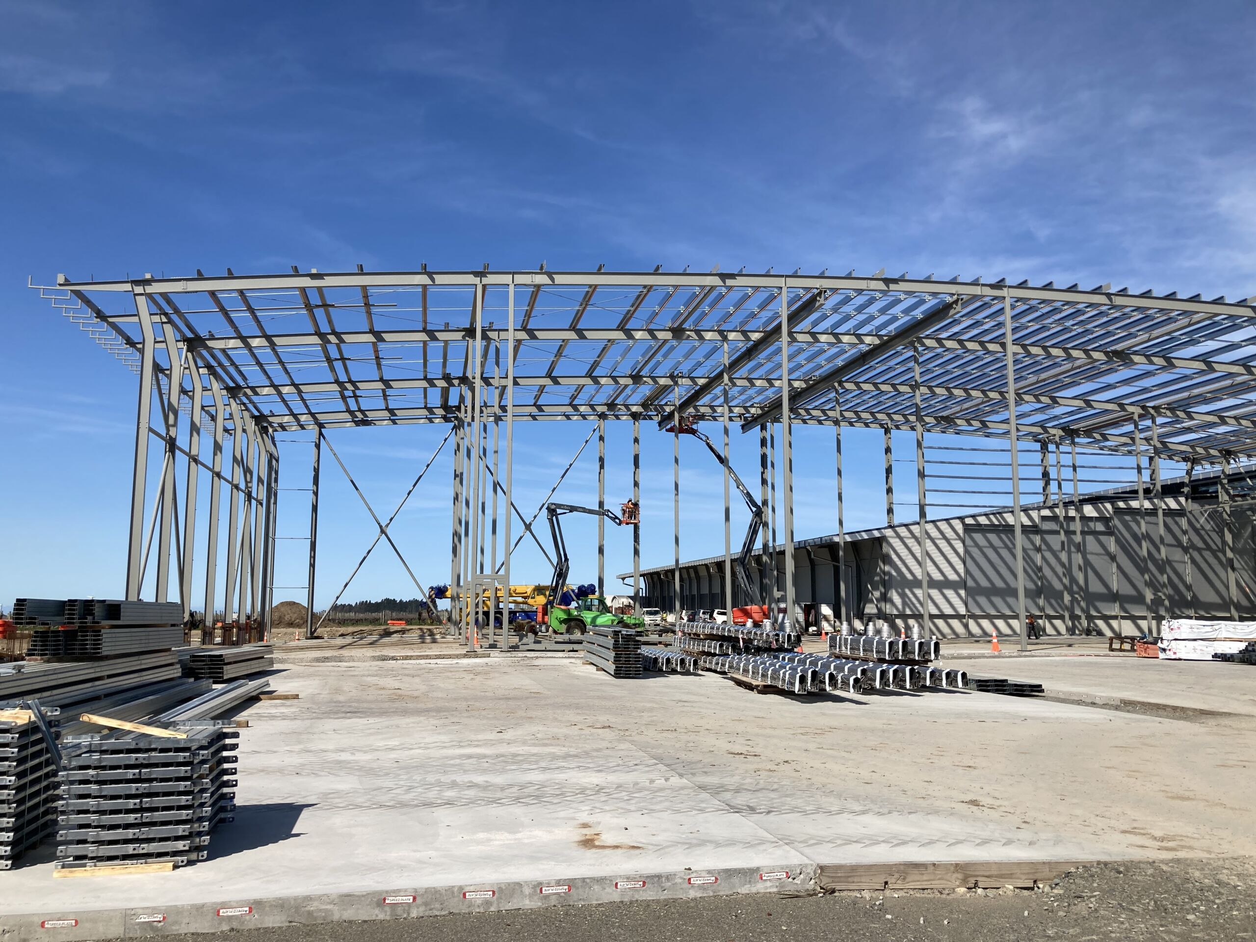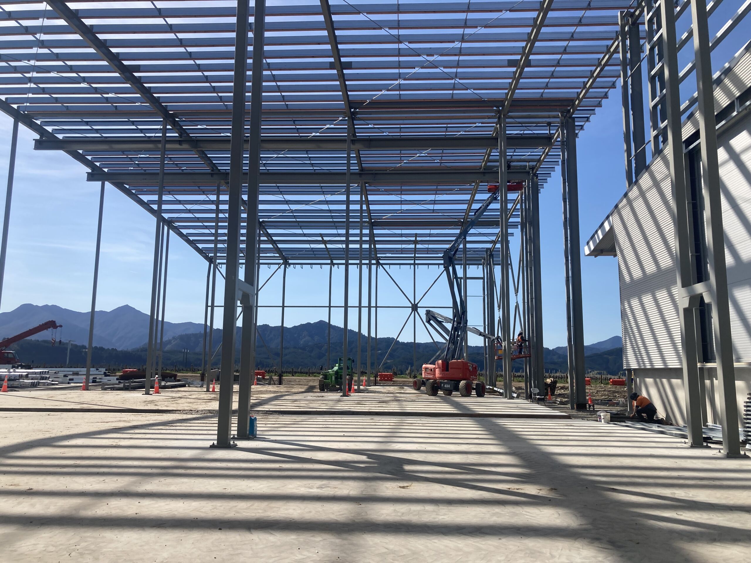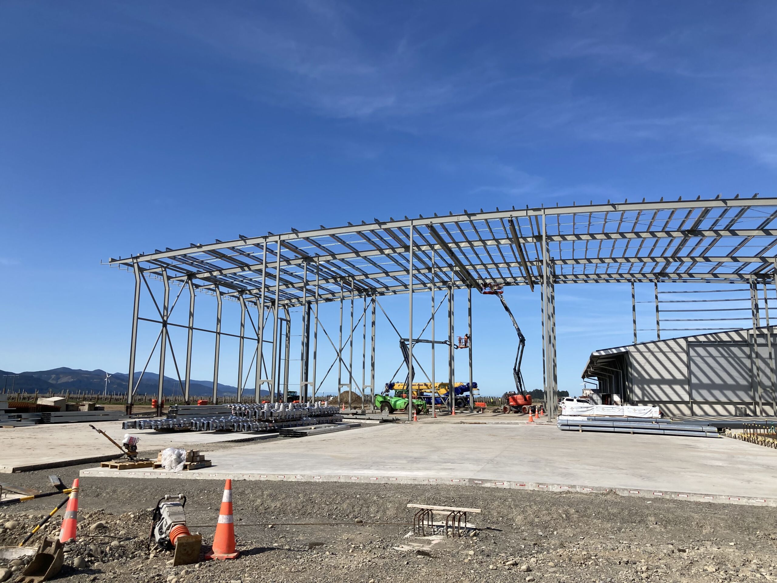 HML Engineering managed the full scope of structural steel for Delegat Wine Estate’s 5,000m² expansion, including drafting, fabrication, erection, and installation. As part of Delegat’s 10-year master plan, the project featured complex elements such as pipe racks, light supports, and custom gates. This facility now stands as New Zealand’s largest winery to house all tanks under a single roof, with the capacity to process 2,000 tonnes of Sauvignon Blanc, Chardonnay, and Pinot Noir grapes daily.